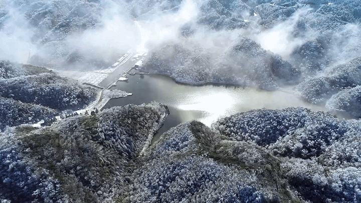 每逢冷空气来临时,山上就会展观的雾海雾凇奇观