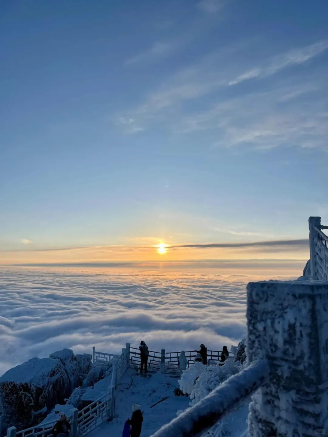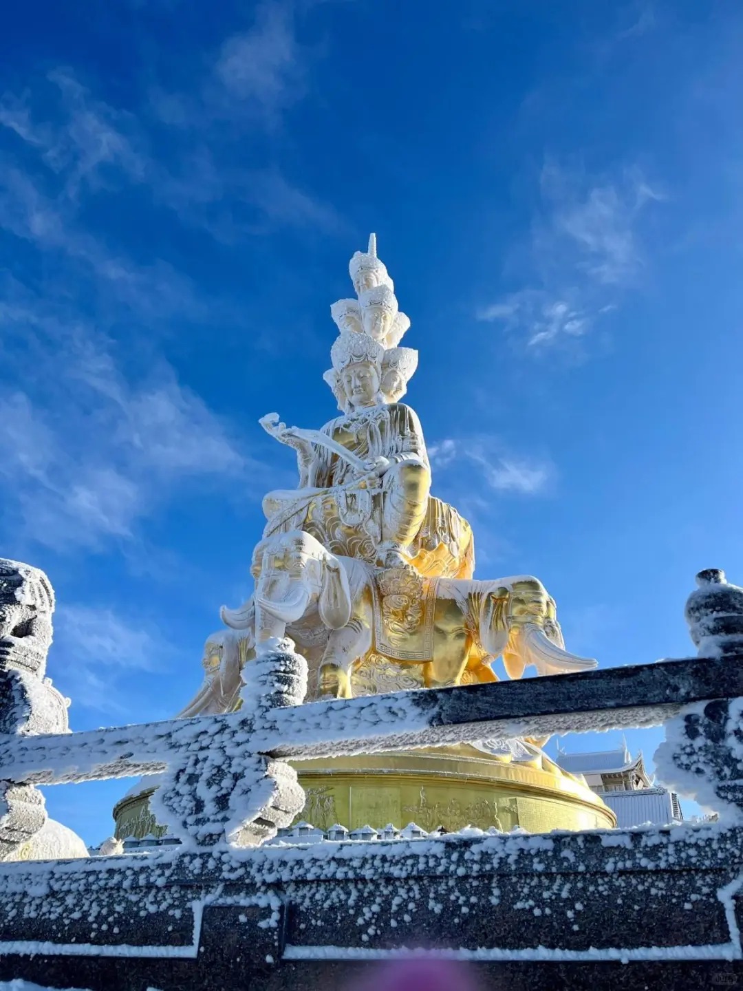 09:30-12:00:游览峨眉山金顶。峨眉山金顶海拔3079米,是峨眉山的象征。金顶上有金、银、铜殿,其中金殿为铜铸鎏金工艺,堪称一绝。在这里,您可以欣赏到云海、日出、佛光等自然奇观(视天气情况而定)。站在金顶之上,俯瞰群山,云雾缭绕,仿佛置身于仙境之中,感受大自然的神奇魅力。