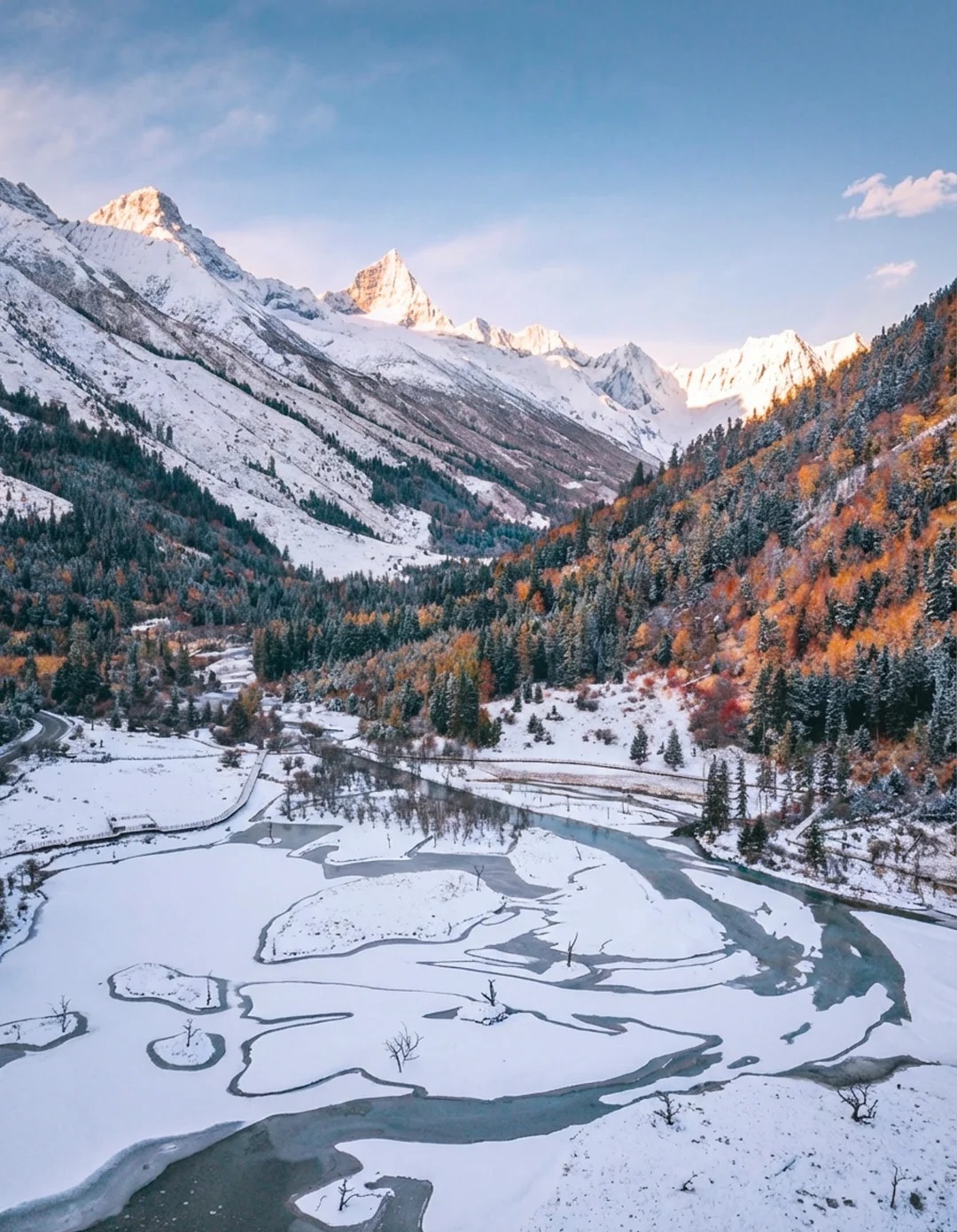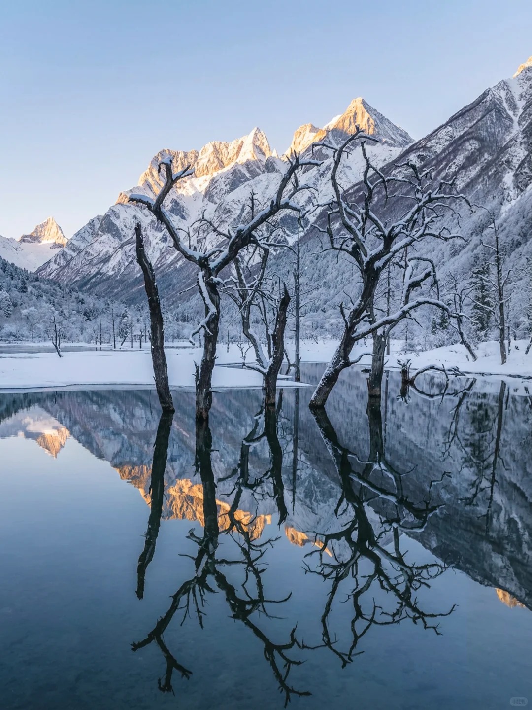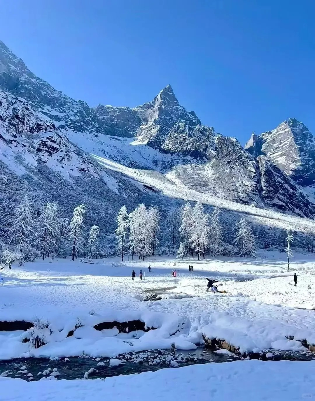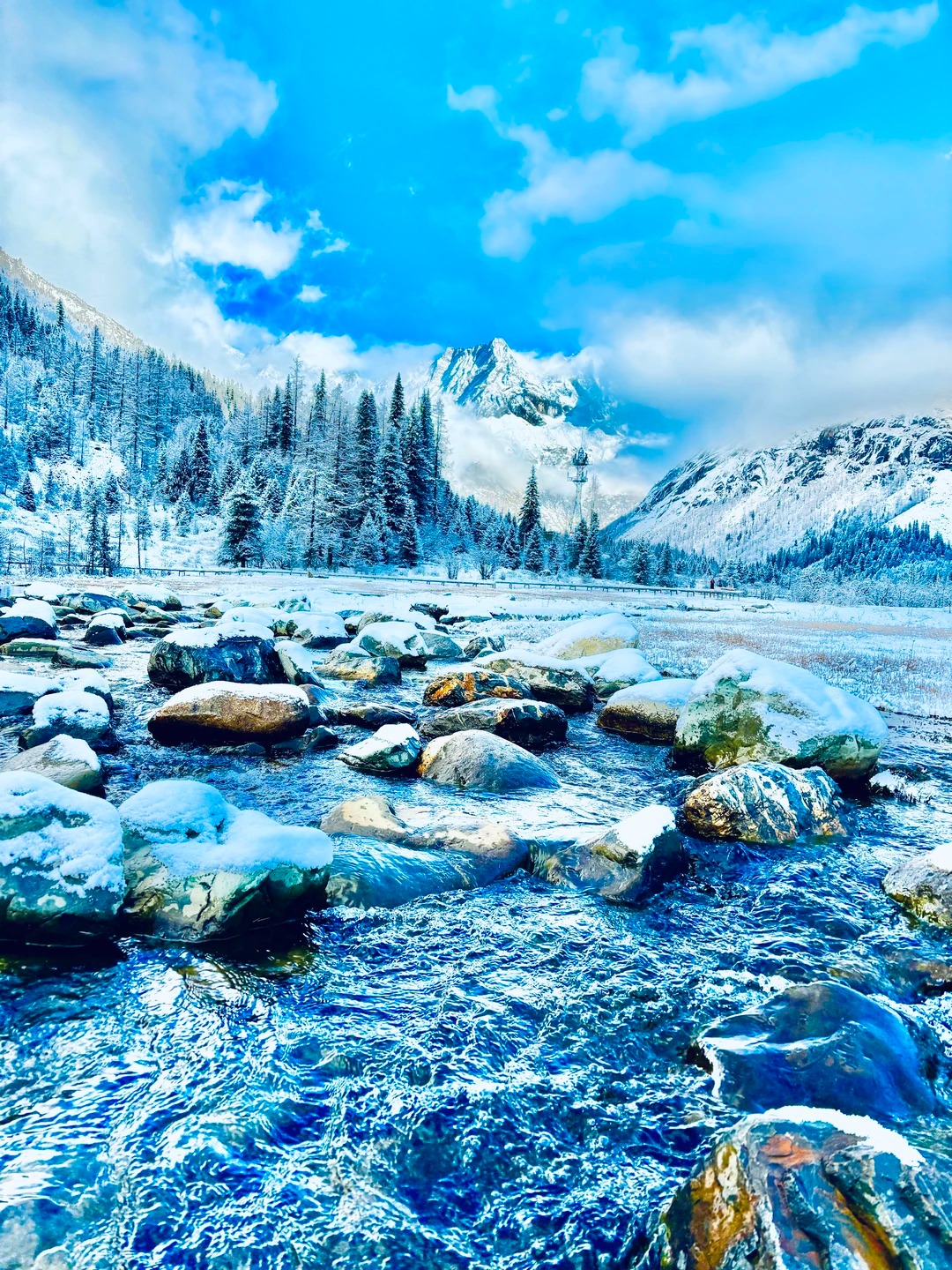 雪、秀、奇、近—— 集雪山巍峨、景色秀丽、景观奇特、距离都市近于一体,是 "离天堂最近,距城市不远" 的绝世秘境。下雪的四姑娘山比北欧还美❗️❗️当双桥沟的雾凇挂满枝头 当长坪沟的溪流凝成蓝冰 当幺妹峰的晨光吻醒云海 这里不是北欧,是离城市最近的雪山童话;