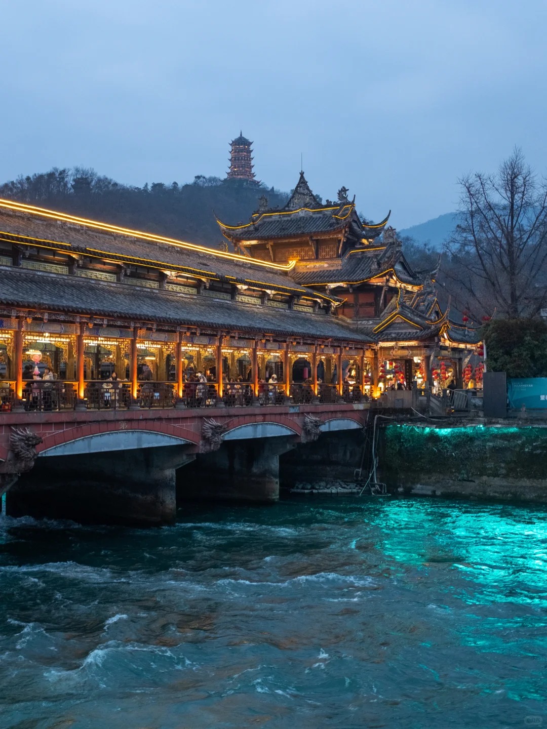 17:30-19:00:南桥夜景。南桥是都江堰的标志性建筑之一,夜晚的南桥在灯光的映衬下美轮美奂,被称为“蓝眼泪”夜景。桥下的岷江水在灯光的照射下泛着蓝色的光芒,与桥上的古建筑风格相得益彰,您可以在桥上拍照留念,感受都江堰夜晚的独特浪漫氛围,也可以在桥边的夜市中品尝一些当地的小吃,结束美好的一天。