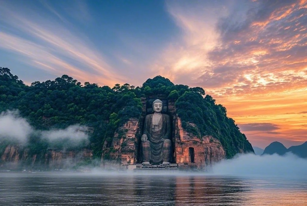 乐山大佛:山是一尊佛,佛是一座山,位于四川乐山市市中区岷江、青衣江、大渡河三江汇流处的凌云山岩壁上,是世界现存最高最大的石刻弥勒坐佛、世界文化与自然双遗产(1996 年与峨眉山联合列入)、国家5A 级旅游景区,素有 "佛是一座山,山是一尊佛" 的千古绝赞。