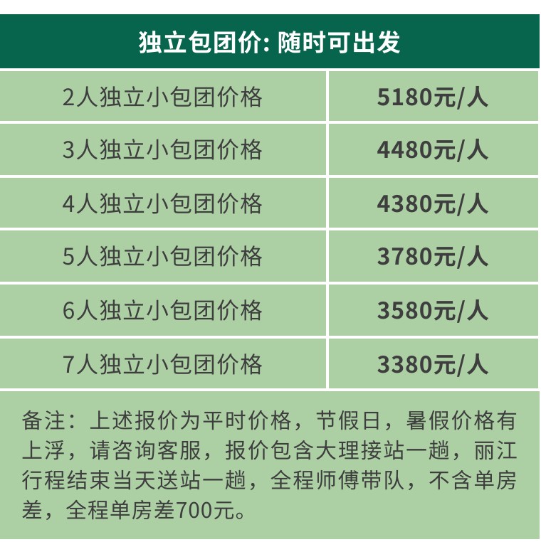 第17期 五一团期 成人3980元/人,单房差1200元,儿童2580元/人(儿童不占床位不含门票)