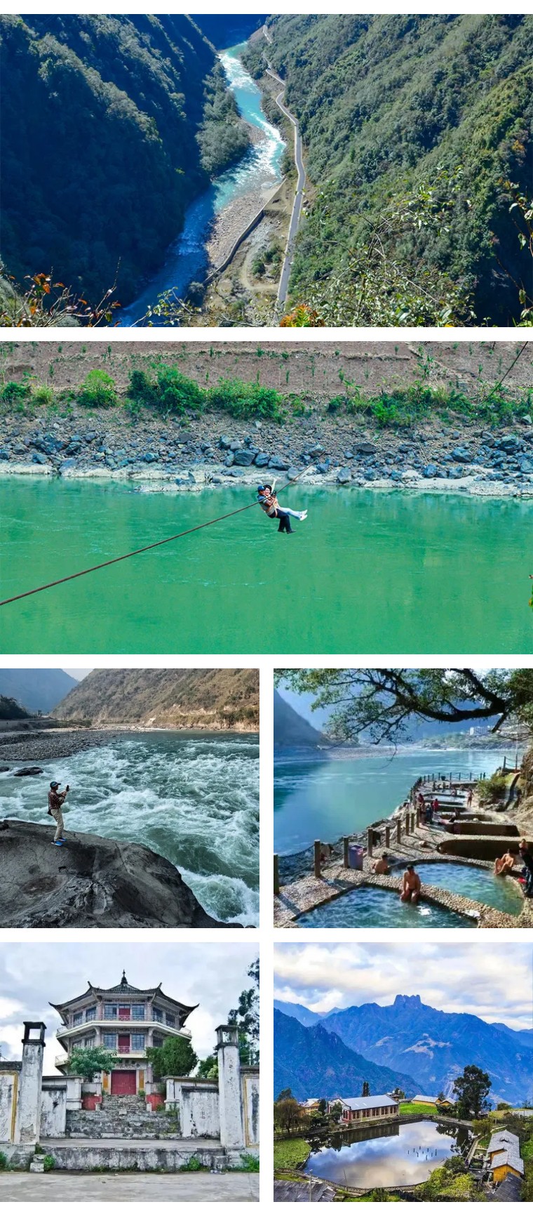六库:澡塘会、维拉坝伟人峰、金满银滩、老虎跳、怒江溜索点