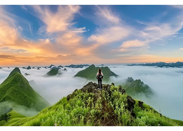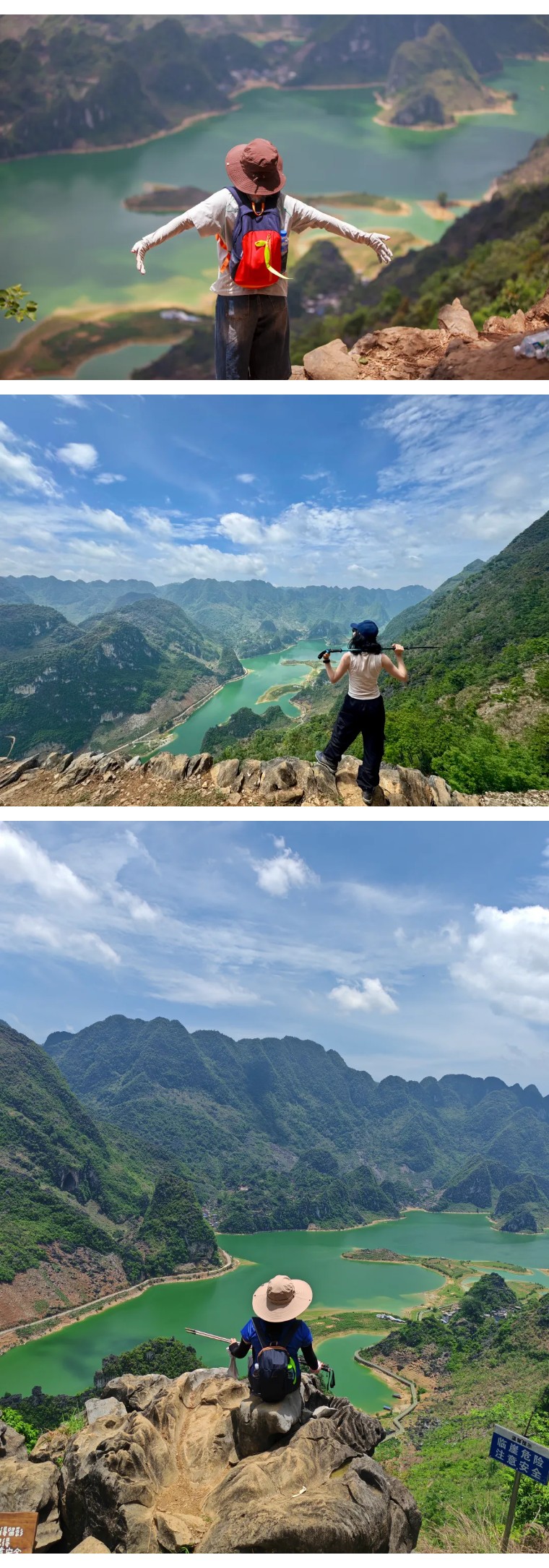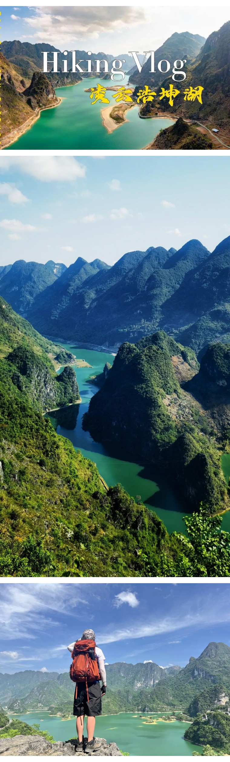 08:00早餐后出发,坐车1小时到达浩坤湖徒步起点,今天徒步网红浩坤湖穿越线,全程约13公里,爬升500米,徒步6小时左右。中午也是路餐干粮。这里也是广西山水经典的徒步景色