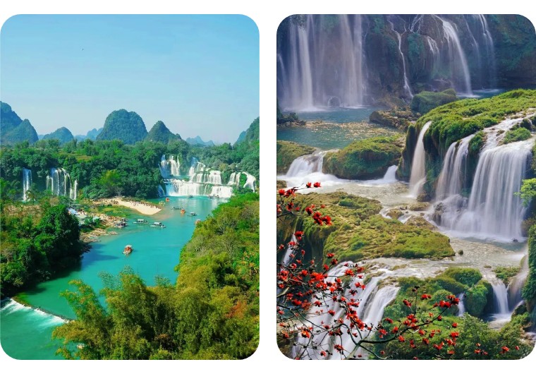 09:00-12:00抵达德天瀑布,游览中越边境-德天跨国大瀑布,领略德天景区中越边境风情,打卡网红景点【中越界碑】