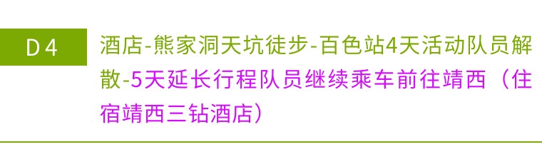 16:00左右抵达百色站,4天活动结束行程,需要购买高铁票的伙伴,购买16点30分后的车次,如果百色没有直达车可以选择到南宁站或者南宁东站中转,期待下次一起出发。走5天延长行程的伙伴继续乘车出发前往靖西入住