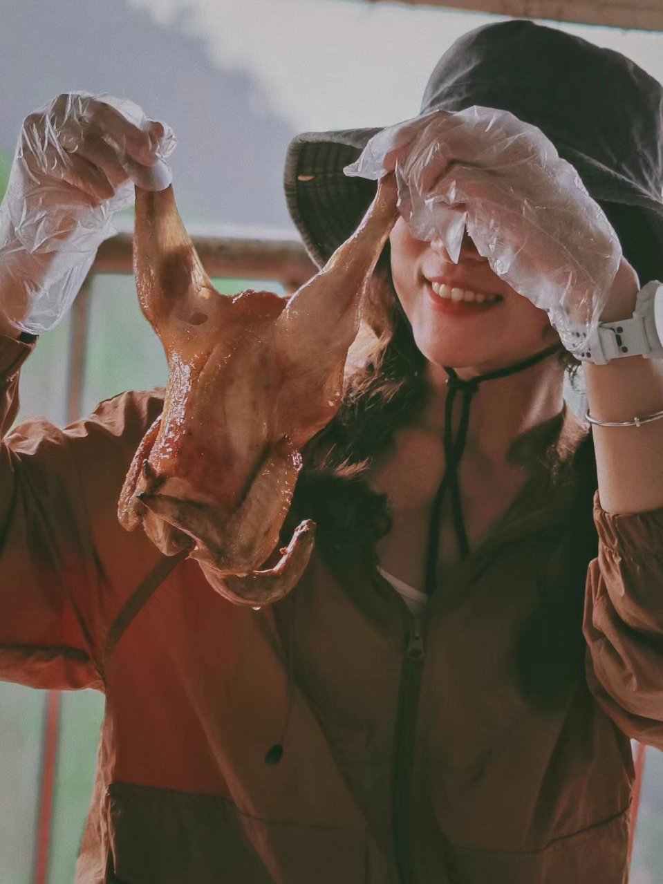 12:30 左右到达农庄,享用美味的茶山鸡午餐,吃货福利来啦!一整只现杀的山中林下鸡,配上柴火炉,加上木瓜,红枣,五指毛桃等等配料,配上一整只现杀的鲜鹅焖着(3-4斤)在简陋的山顶农庄,我们一样吃的很鲜美,幸福。