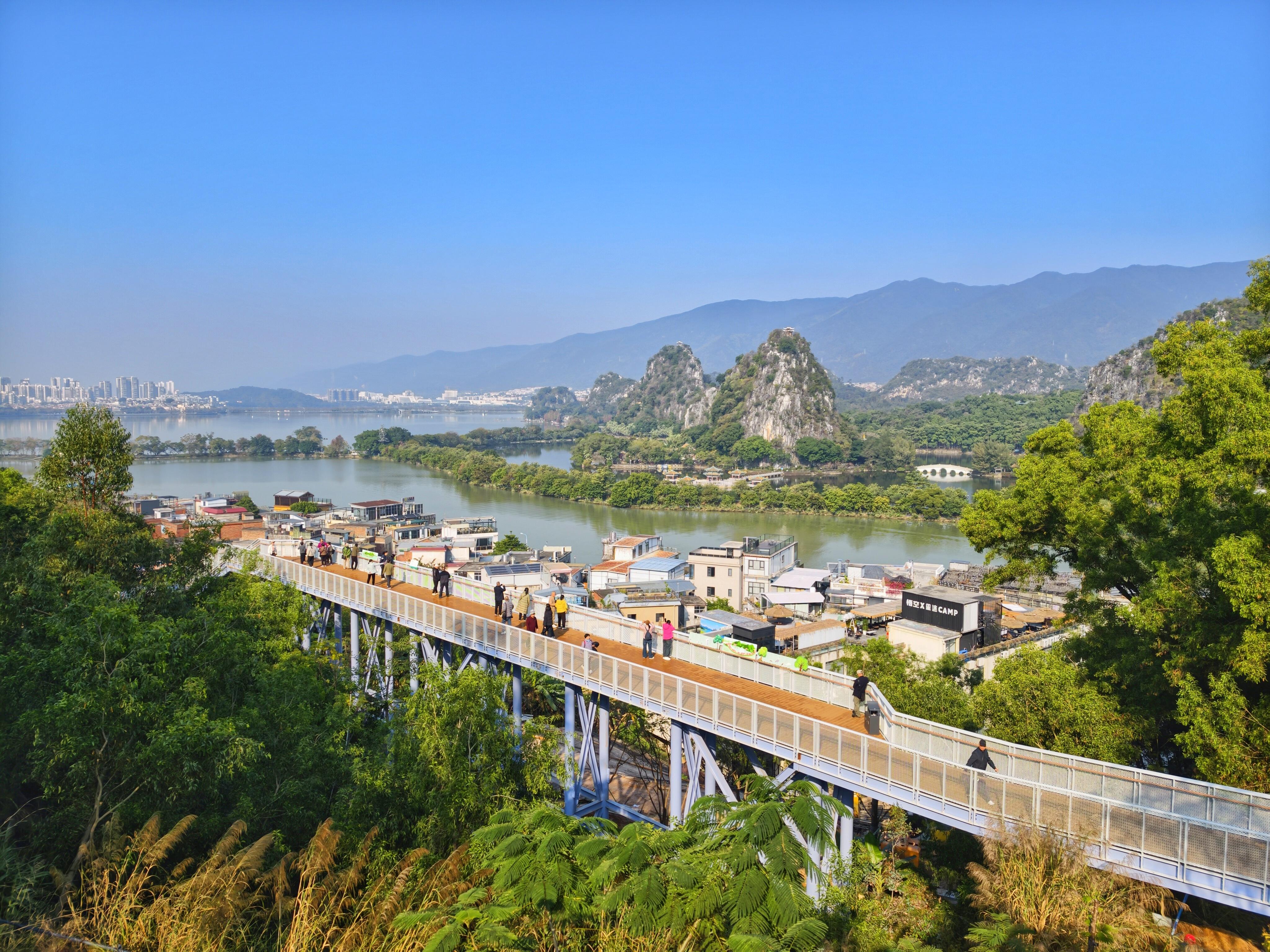 13:30 到达肇庆岩前村位于星湖绿道,一个面山靠水的村庄,特别有文艺气息;且元旦建好开放的象岗云道让这里的风景更加惊艳,随手一拍的大片,触手可得;