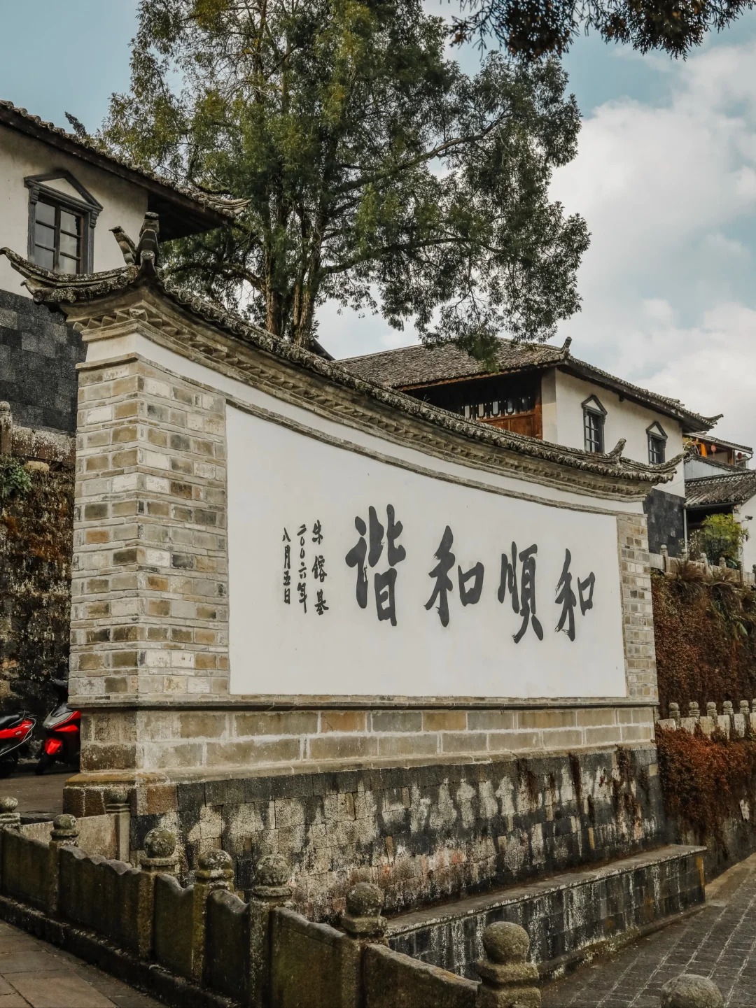 这里是一代哲人艾思奇的故里,是翡翠大王的故乡,是我国西南地区著名侨乡,是七千多居民依然和谐生活的一个活着的古镇。和顺先后获得中国第一魅力名镇、中国历史文化名镇、国家环境优美乡镇、国家文化产业示范基地等多项殊荣。走进和顺,展现在我们密面前的就是一派如诗如画的风光。顺和牌坊是和顺古镇的标志性建筑。中国人都喜欢和、顺两个字,和与顺无论如何组合,都让人向往,让人琢磨。这里巧妙地用了回文的修辞手法将和、顺两字构成和顺顺和的组合,寄托对生活的美好向往,对人们的美好祝愿