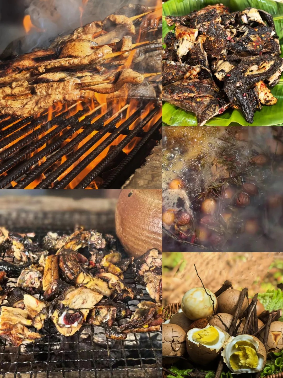 15:00 山野户外用餐(烧烤、非遗美食土锅牛肉、野生跑跳鸡肉火锅/大自然生态蔬菜/溪流冰镇野果)