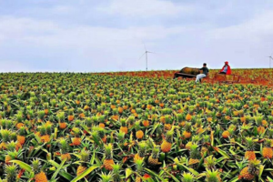 10:00 中国独有的著名田园景观【菠萝的海】远望去成片菠萝的海连绵起伏,一个个金黄色菠萝立在株苗上,就像绿色海洋上的金鳞鱼随风涌动,还不时飘来阵阵的香甜味。白色的风车耸立其中,这里被誉为中国的“普罗旺斯”、“北海道的花田”。