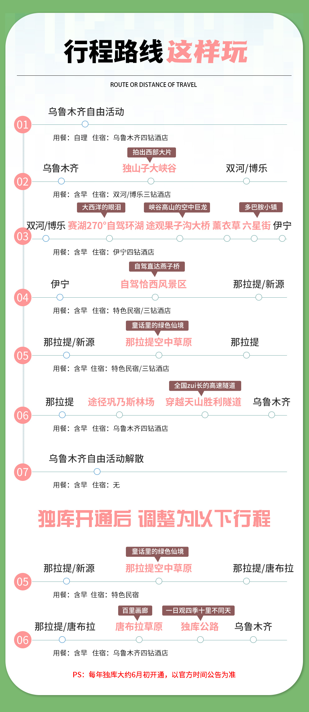 独库开通后调整为以下行程: