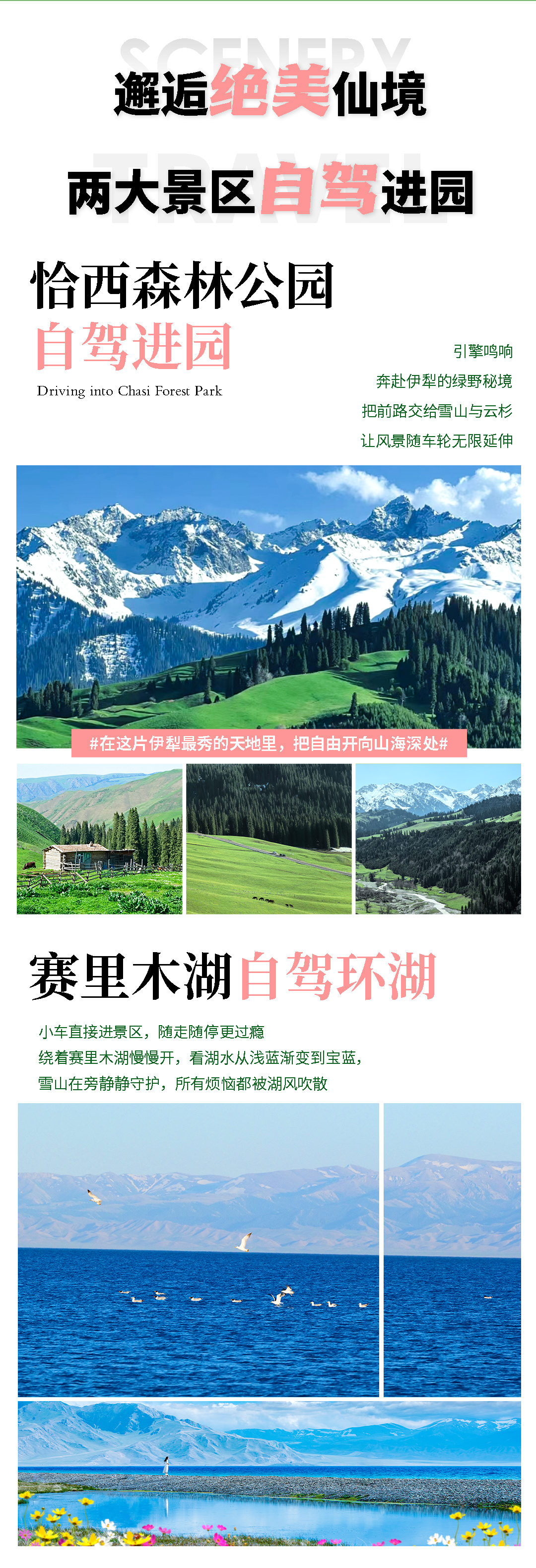 早餐后出发开启新的征程,前往【恰西风景区森林公园】,此景区我们不换车乘坐行程用车自驾进景区抵达燕子桥停车场;恰西是伊犁河谷的一个村子,也是天山脚下最美的草原之一。素有“塞上江南在伊犁,伊犁最秀是恰西”的美称。徒步穿过恰西草原,一路上都是蓝天、雪山、草原、森林、牛羊、溪流、木屋,人与景的自然融合,美得无与伦比,在这华彩的天地间,相信会带给你惊喜。