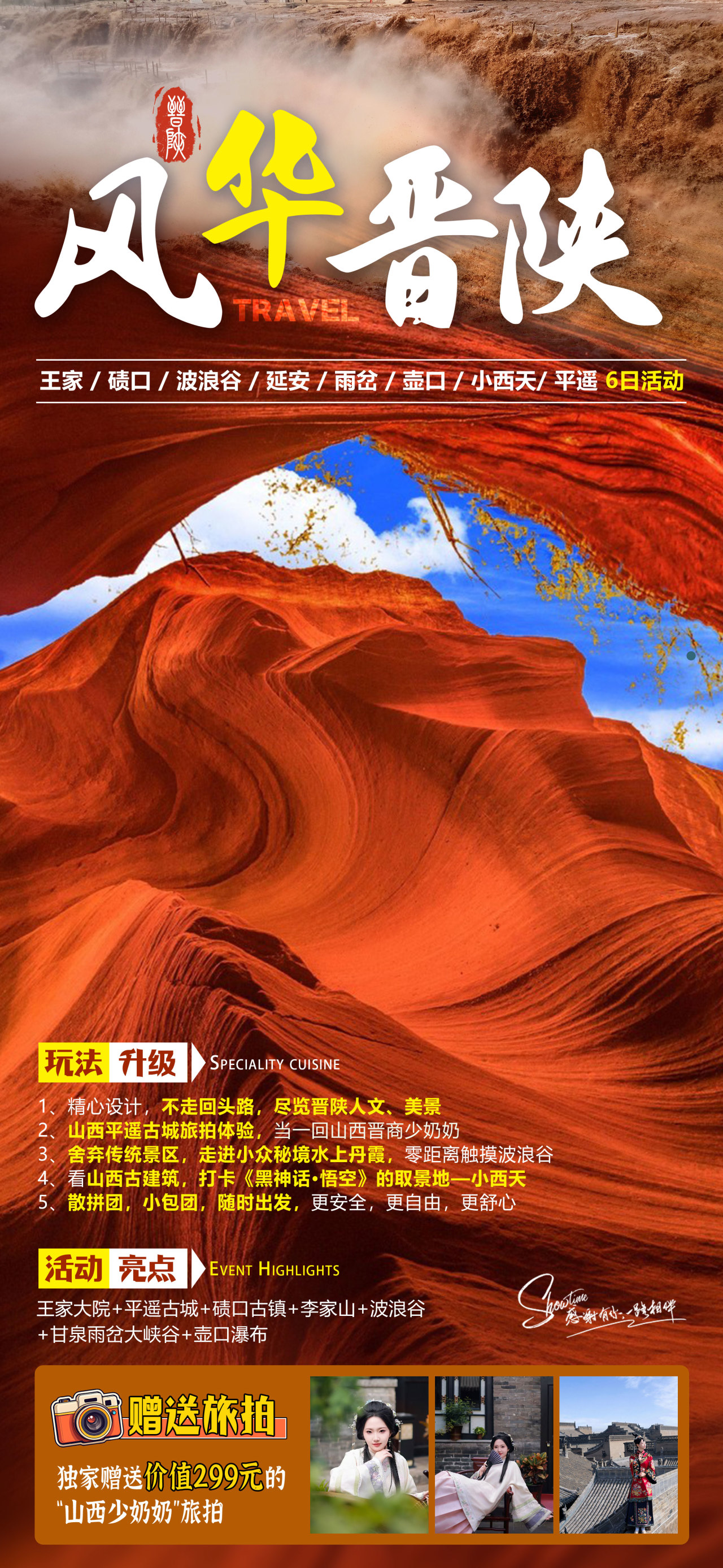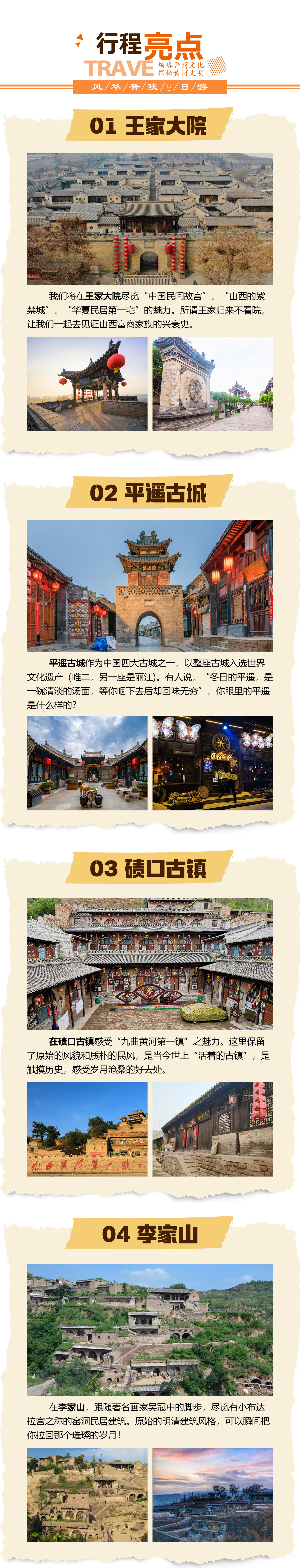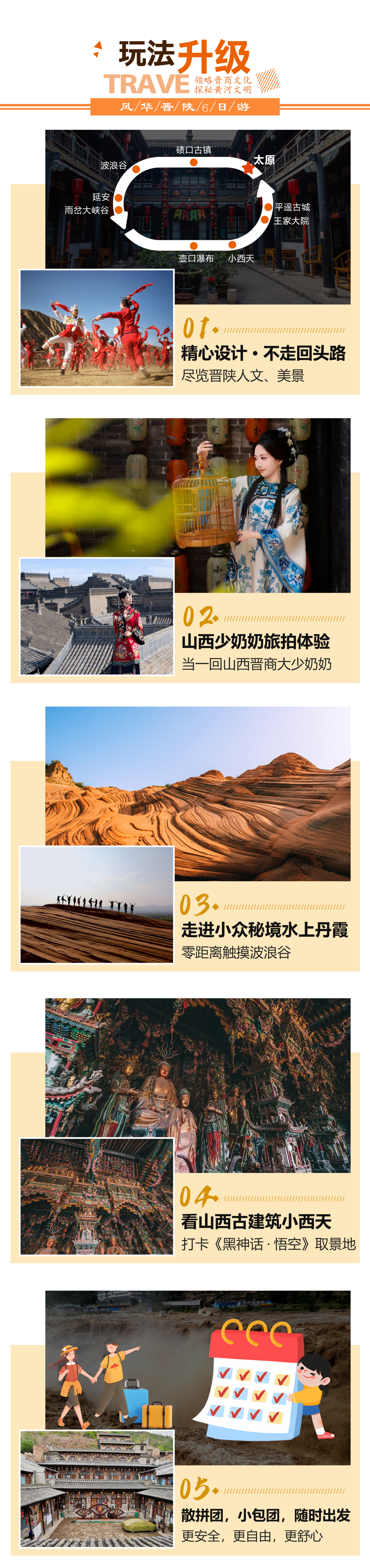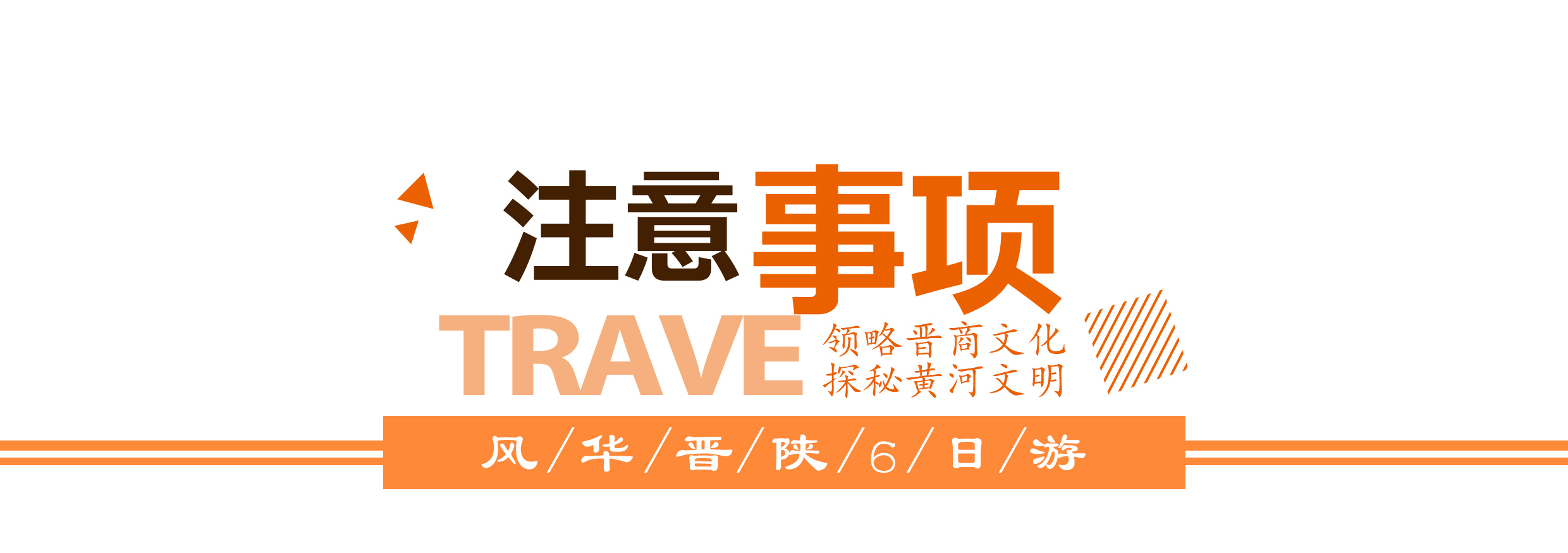 服装:晋陕地区早晚温差较大,请按提示备好所需衣物哦;