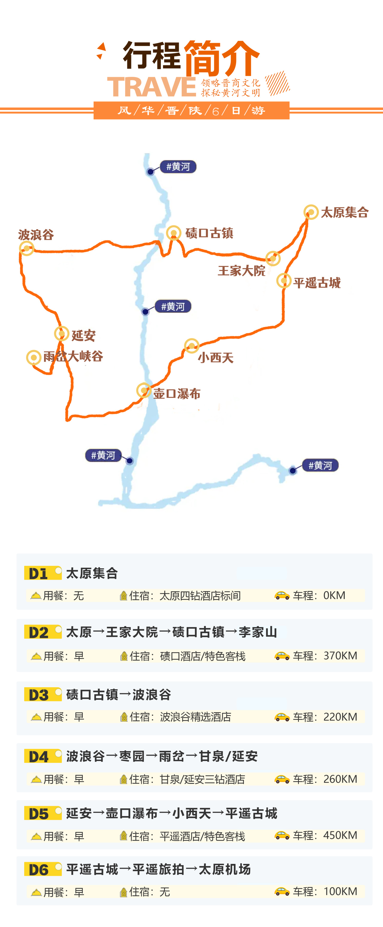 5、小交通费用:甘泉雨岔大峡景交车,壶口瀑布景交车;