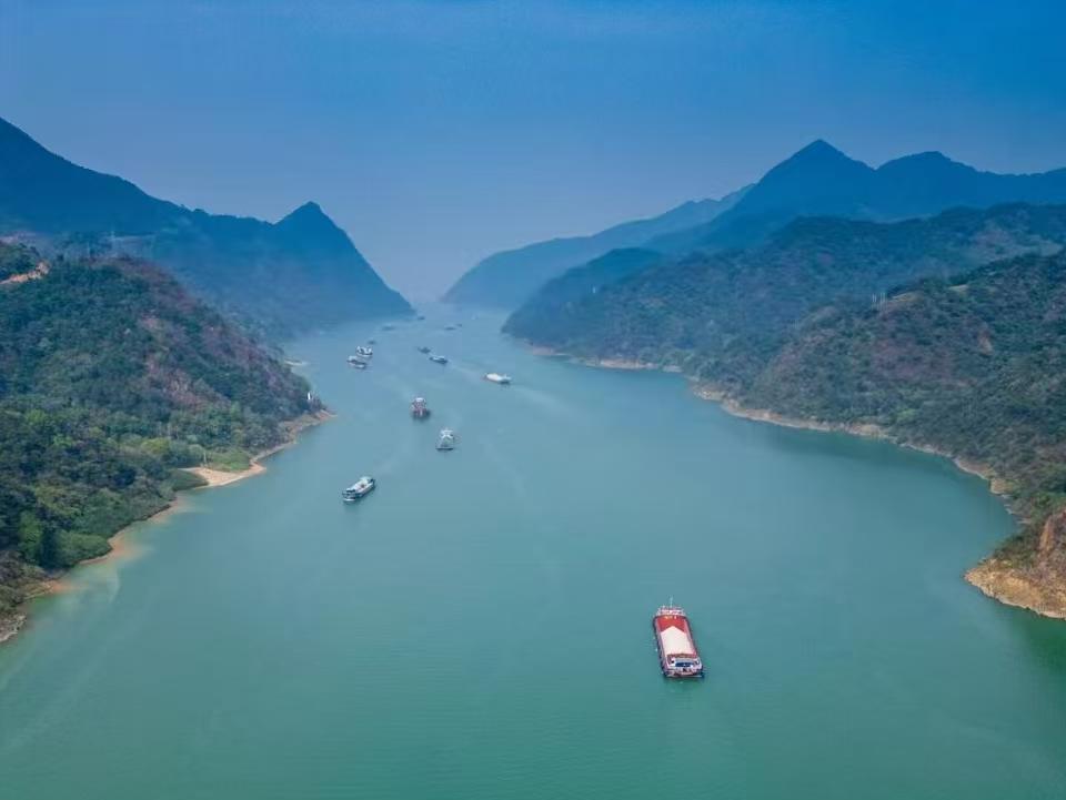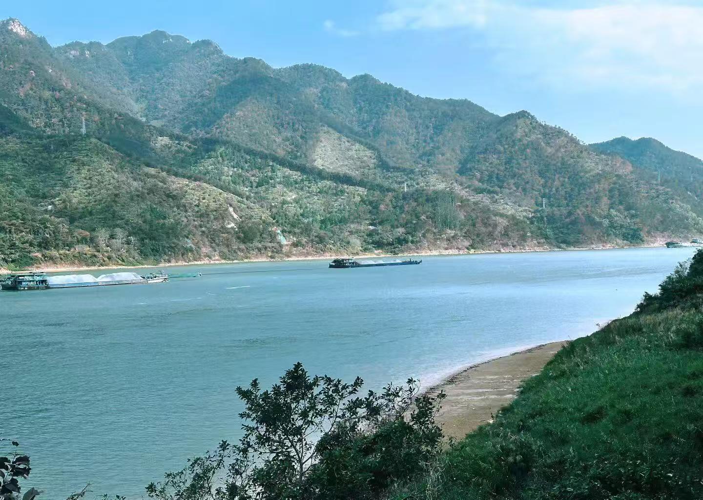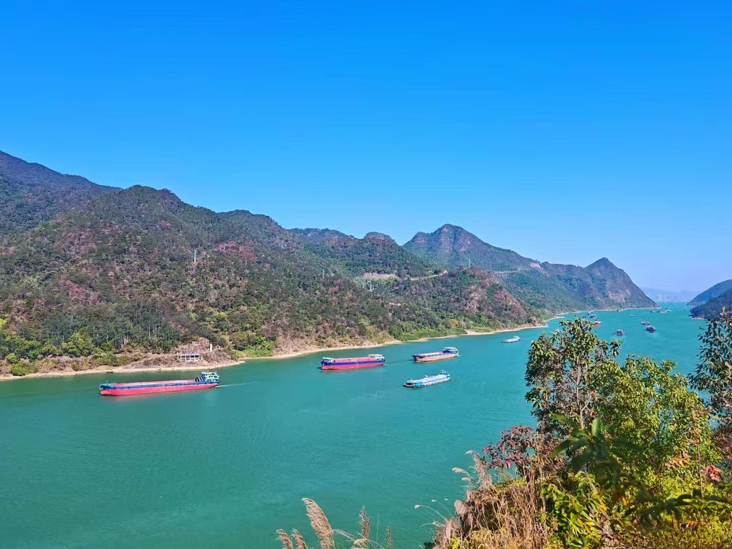12:30 用餐完毕,继续出发,一路是秀美的江景风光。
