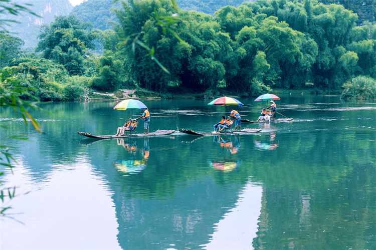 途中会经过遇龙河码头,想体验乘坐竹筏的队友,可现场咨询领队。乘竹筏在遇龙河上可以慢慢品味这秀美的山水田园。