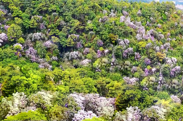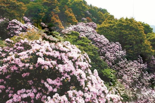 梧桐山的毛棉杜鹃是深圳唯一的原生高山杜鹃,也是世界唯一在大都市中心分布的原生高山杜鹃,每年3-4月份为盛花期,粉红色的花团成片点缀在漫山阔叶林中,繁花似锦、灿若云霞,蔚为壮观。