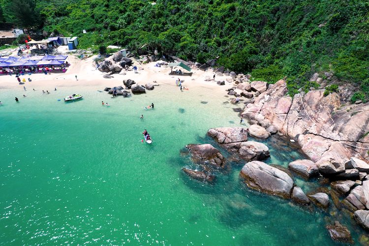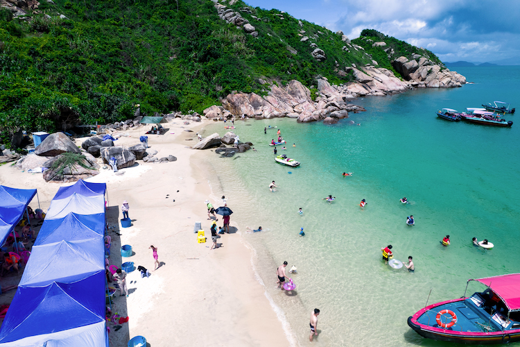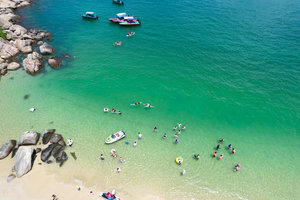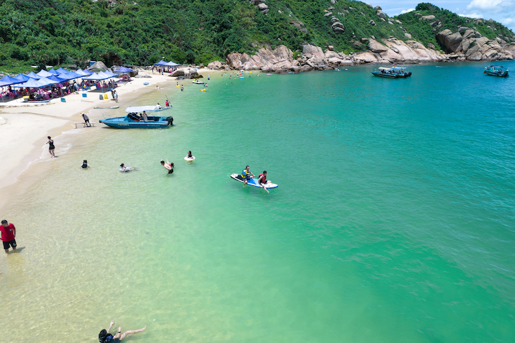 这里也是巽寮湾浮潜天堂,风平浪静时,海水就像剔透的淡蓝色玻璃,让人一眼就能看到海底游走的海洋生物。
