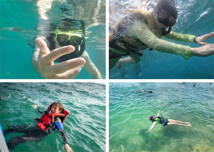 ④浮潜:为队员免费提供浮潜装备使用(呼吸管+咬嘴+潜镜+防刮鞋+救生衣),不使用不退费