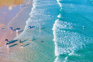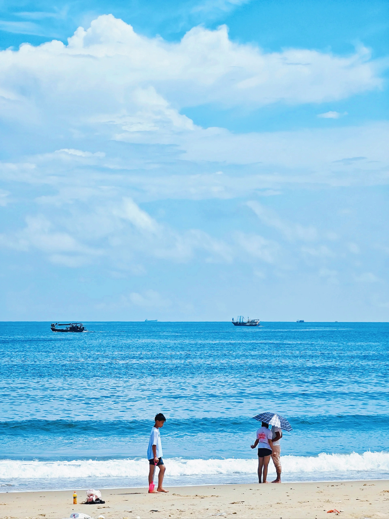 中国第一滩有12公里长,沙质洁白细软、宽阔平缓的沙滩,沿沙滩外侧是连续不断宽达500-1000米的沿海防护林带。