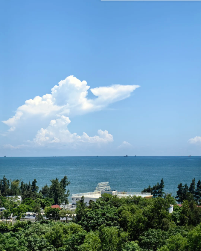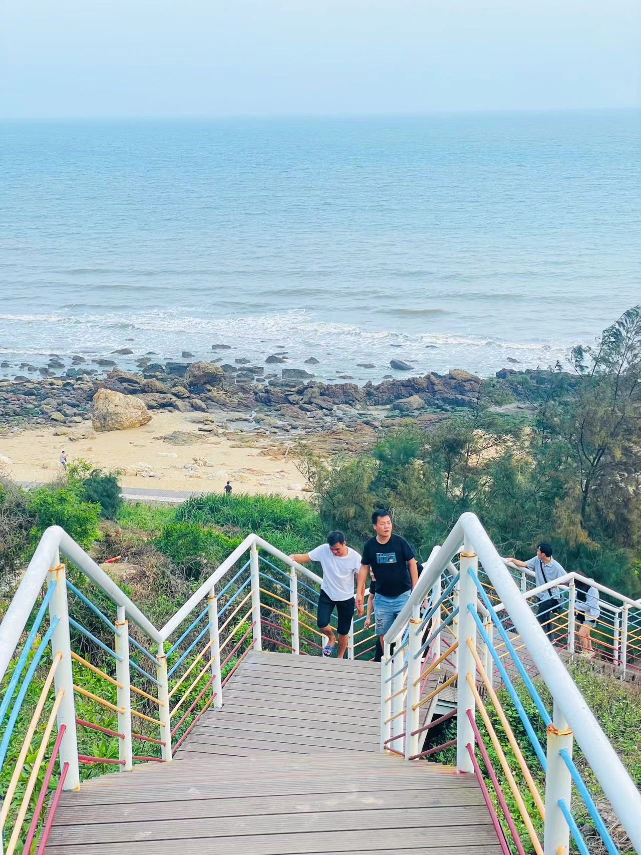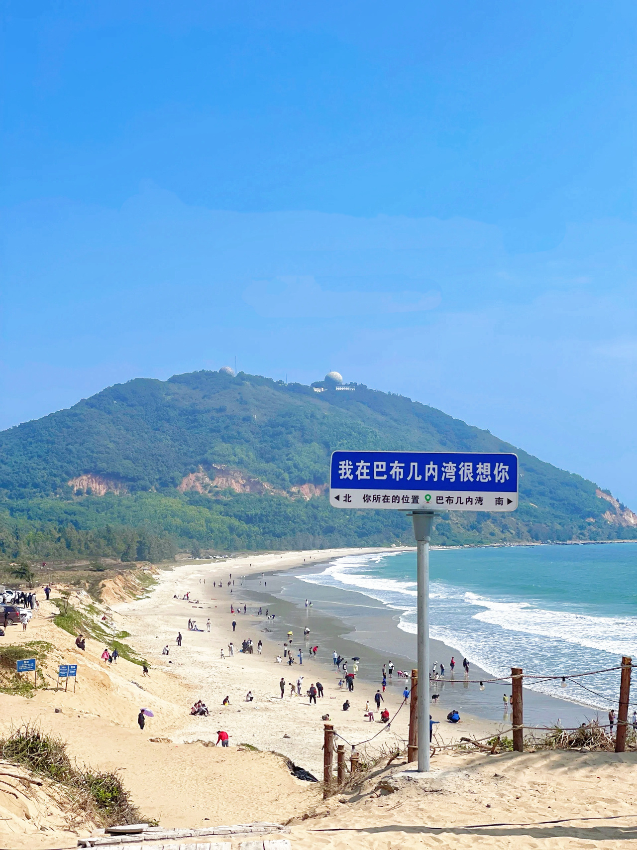 只用几分钟,缓缓登上这座葱郁的小山。在观景平台上,你将获得一个“上帝视角”:眼前是第一滩延绵数里的银色沙滩与蔚蓝大海,山海相依的壮阔画卷在此完整展开。