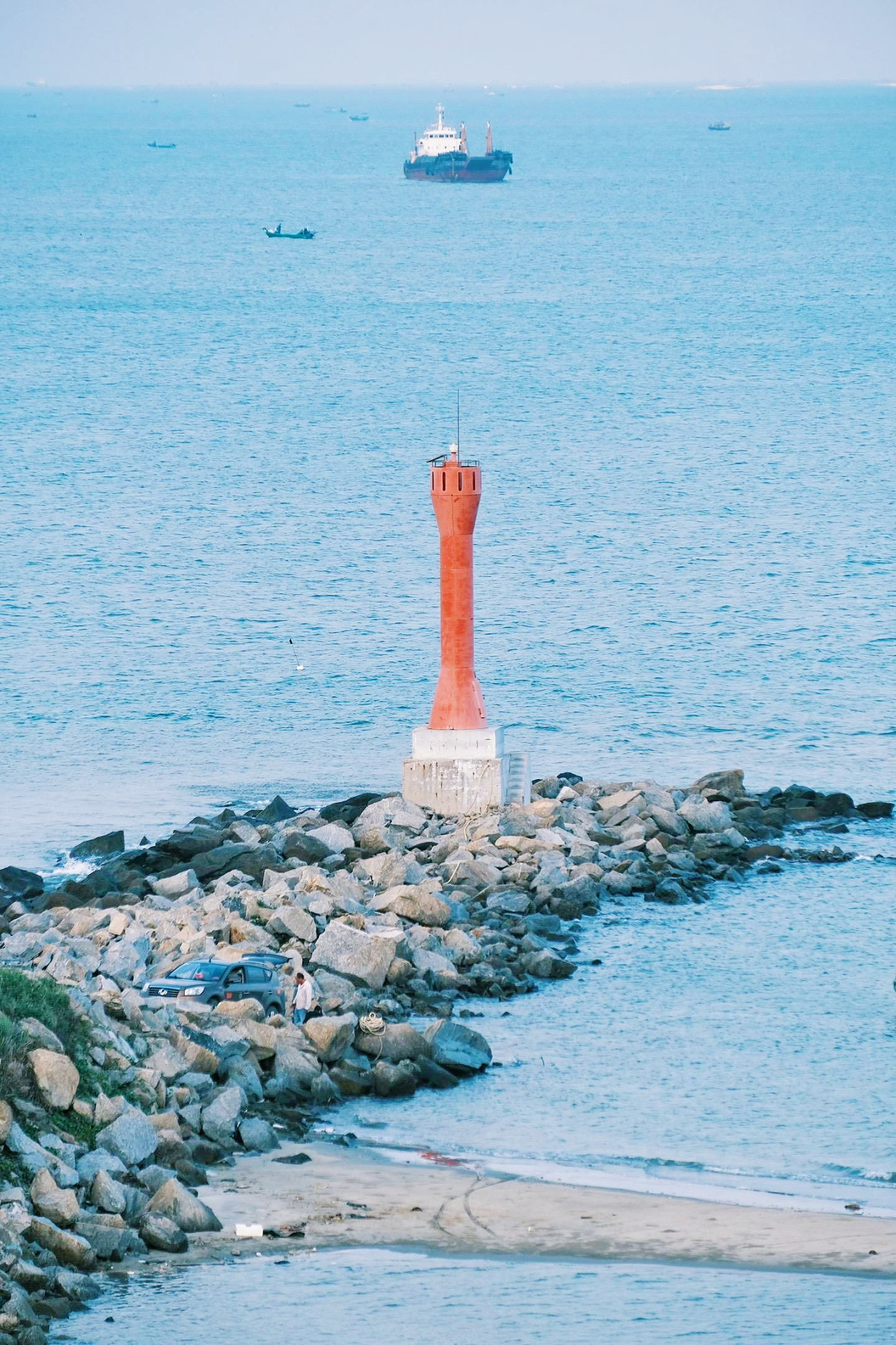 红色的灯塔在湛蓝的海天之间显得尤其瞩目