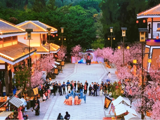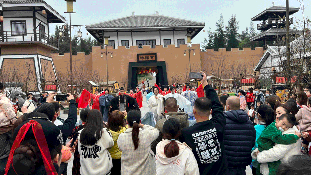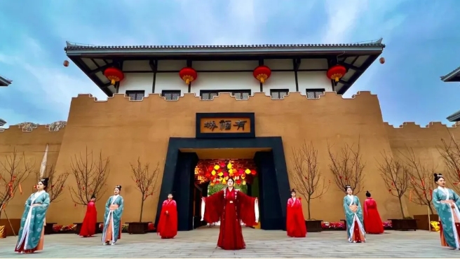 国潮文化艺术节围绕“好心有福气·国潮文化艺术节”为主题,新增2500平方米园内空间,同步在中国第一滩增设演出舞台,带游客体味不一样的国潮文化。景区以传统文化为根本基调,南北朝隋唐古建筑为背景,最大程度还原古城盛景。