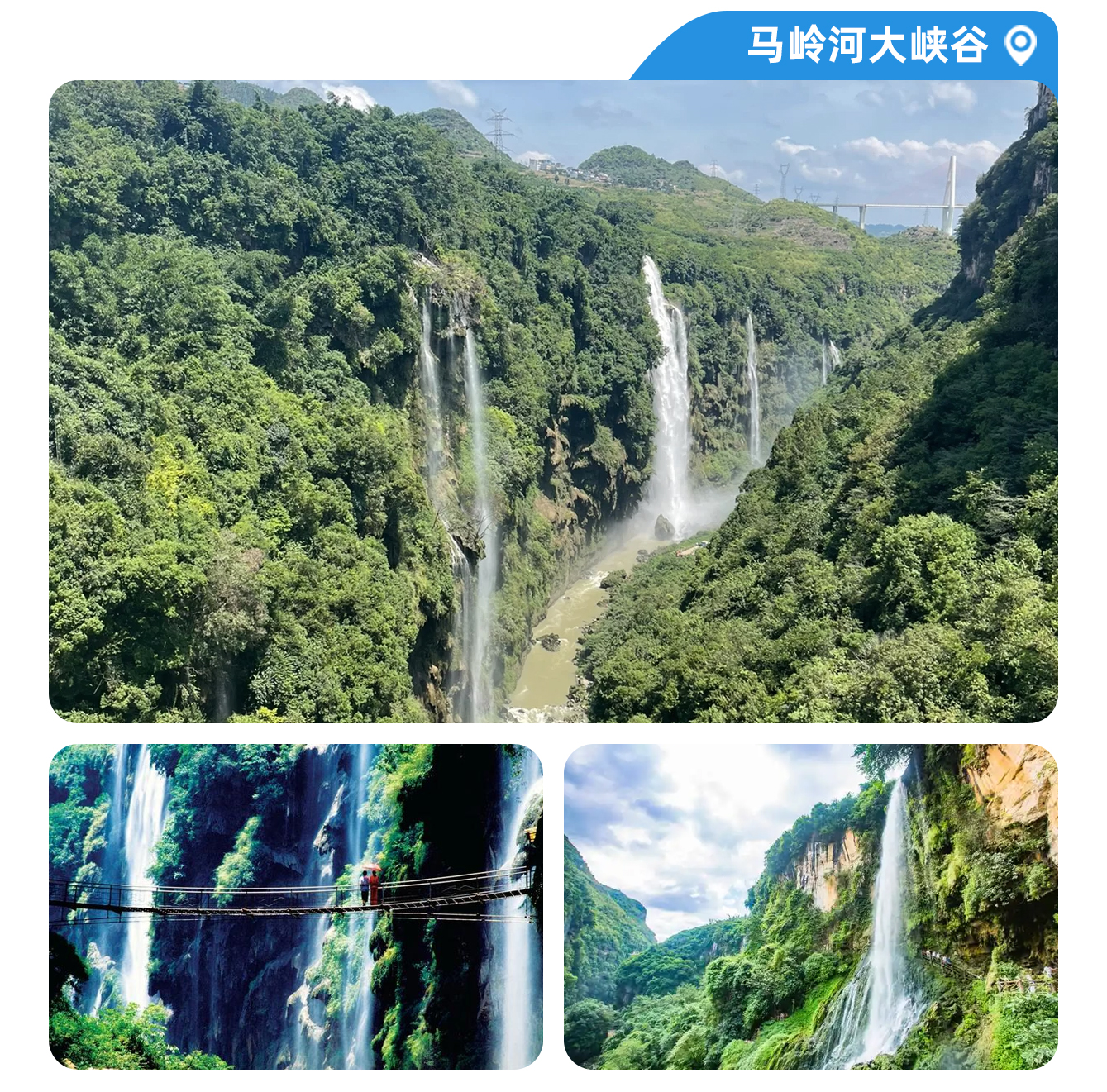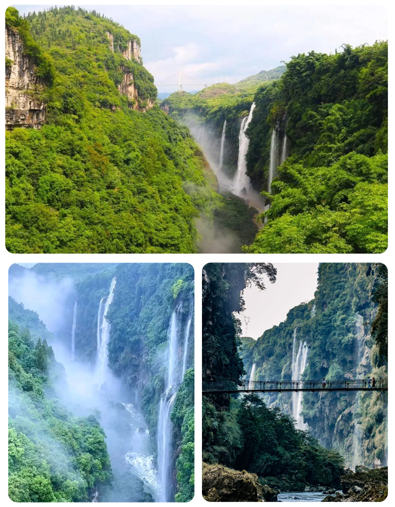 【马岭河】马岭河是地球上一道美丽的疤痕 ,是一个集雄、奇、险、秀为一体的国家级景区。马岭河峡谷是一条在造山运动中剖削深的大裂谷地缝 ,谷内群瀑飞流,翠竹倒挂,溶洞相连,钙化奇观,两岸古树名木千姿百态。它享古桥、古战场、古驿道等人文景观 ,充满了古野的情趣和神秘幽深的色彩 ,以规模宏大的瀑布和岩页壁挂 ,形成主要景观特色 ,堪称一绝。马岭河天星画廊 ,国家级马岭河地缝景区,人称“天下双绝”。
