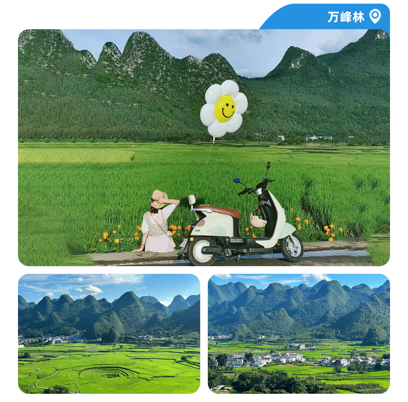 【万峰林】该峰林被<中国国家地理>“选美中国”活动评选为“中国最美的五大峰林” 之一 。 这里的田园风光、布依风情美不胜收 ,让人依依不舍 ,恋恋不忘 。万峰林八卦田是一片天然形成的八卦田 ,平卧在 纳灰寨农田中央 ,其造型神奇迷离,如神匠打造,层叠有序,八卦田中有三个天然地漏深不见底 ,被称为地眼大地的眼睛。据说踩一踩八卦田 ,升官又发财。